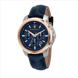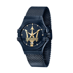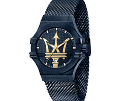 Maserati SFIDA Mens Chronograph Watch With 44mm Blue Dial And Yellow Gold Plated Bracelet