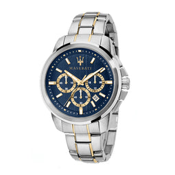 Maserati Competizione 43mm Chronograph Blue Dial Two Tone SS Bracelet