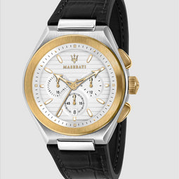MASERATI SFIDA 44mm, Chronograph, Yellow Gold PVD case, Screw Case Back and Crown, Silicon Strap, WR 100m