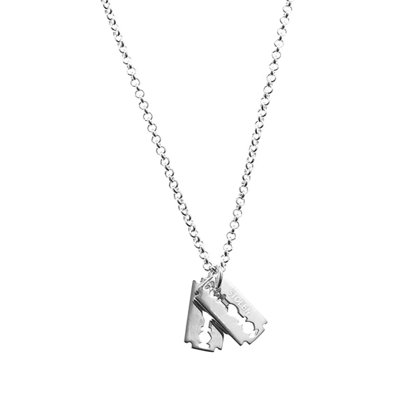 Baby Blades Necklace crafted in high polish 925 sterling silver with engraved razor pendant.